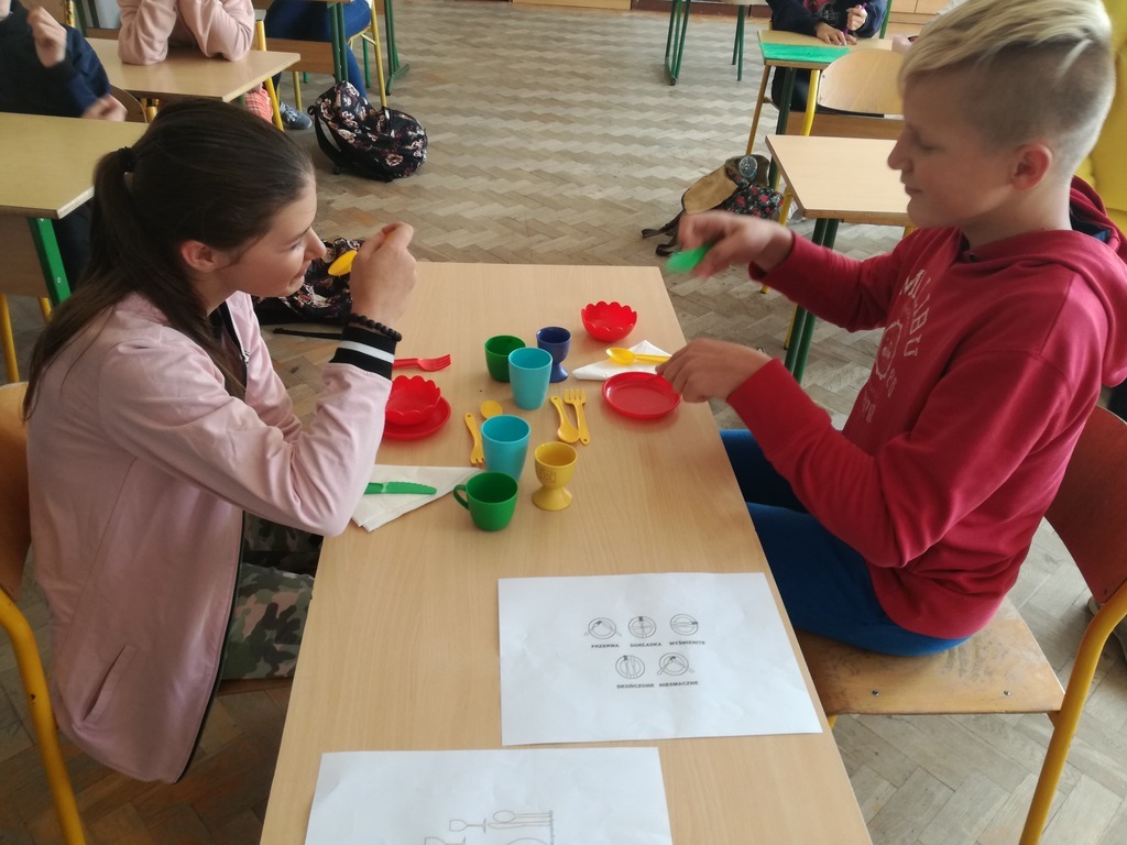 W ramach zajęć z wychowania do życia w rodzinie uczniowie VII klasy poznali zasady savoir-vivre obowiązujące nas w codziennym życiu. Uczniowie przygotowali zastawę stołową, zasady nakrywania do stołu, przeprowadzili scenki imitujące kolację w restauracji. W zajęcia bardzo zaangażował się Filip Lissiak, który perfekcyjnie omówił przygotowany wcześniej tak ważny dla nas temat.