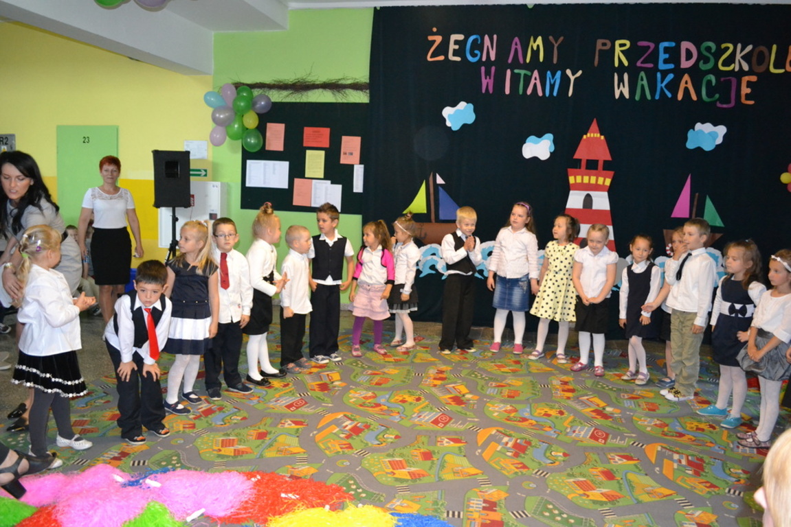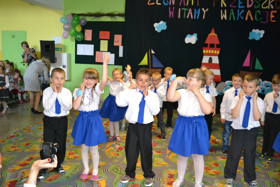 Grupy starsze 0A i 0B żegnały się już z przedszkolem bowiem od 1 września będą już „pierwszakami”. Podziękowano wszystkim nauczycielom i pracownikom przedszkola za wytrwałą pracę nad kształtowaniem charakterów naszych pociech.