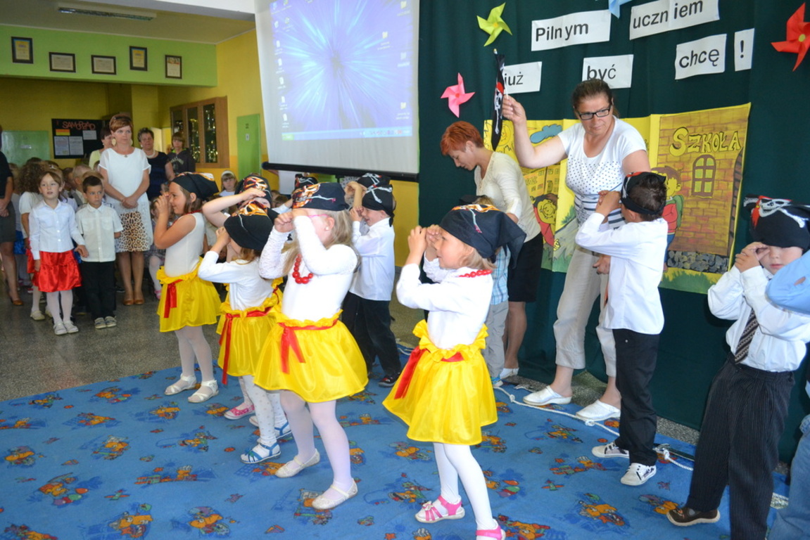 Piękne stroje, ładny śpiew recytacje i zespołowe tańce (w tym polonez, taniec piracki i taniec czekoladowy) to wszystko pokazali wychowankowie Przedszkola w Łebieniu przy bardzo licznym udziale rodziców na zakończeniu roku przedszkolnego .