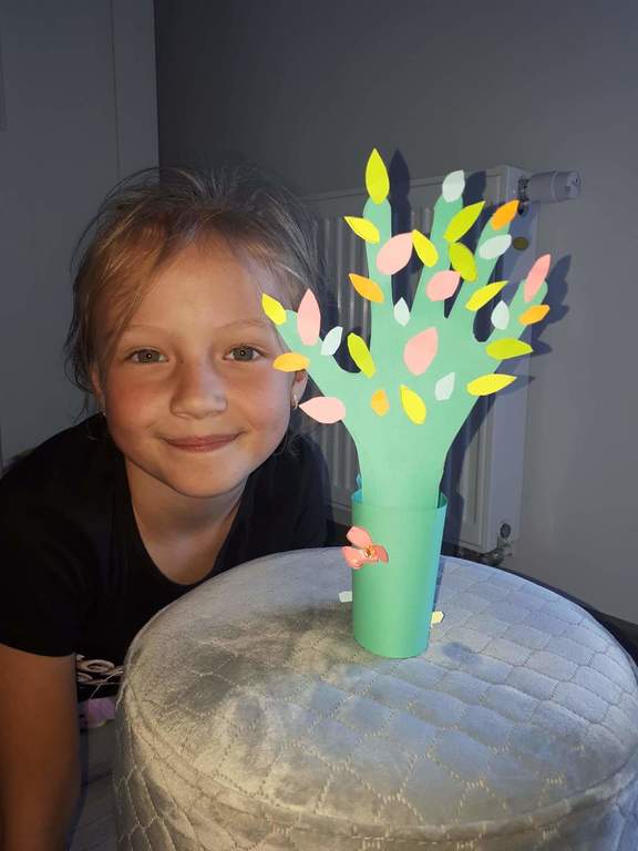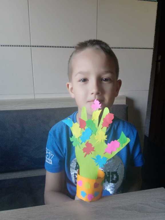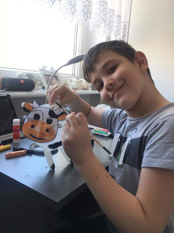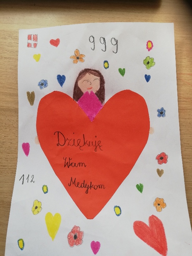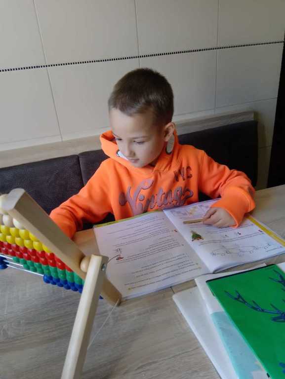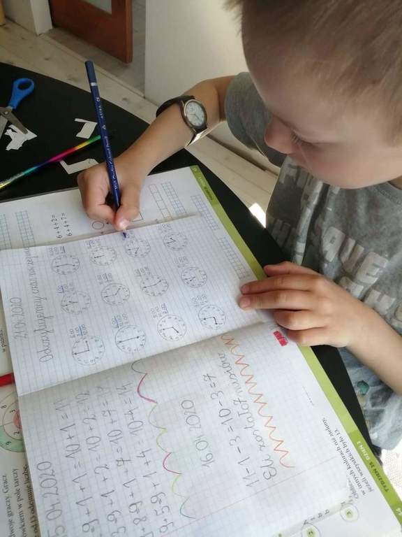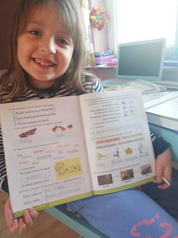 Pierwszaki podczas tego wyjątkowego i trudnego czasu nie zapominają o szkole. Codziennie w swoich domach, przy zdalnym wsparciu swojej pani Doroty Klawikowskiej, piszą, czytają, liczą, śpiewają, wykonują piękne prace plastyczne i techniczne. Nieocenioną pomocą są dla nich również ich rodzice i bliscy w ich domach. Oczywiście pamiętają też o tym, że „W zdrowym ciele zdrowy duch”. Zatem wykonują ćwiczenia ruchowe, tańczą przy muzyce do filmików, które przysyła im pani. Jednak bardzo tęsknią za swoimi kolegami i koleżankami. Najbardziej brakuje im wspólnych rozmów i zabaw na szkolnych korytarzach. Dlatego często dzwonią do siebie i rozmawiają o tym, jak spędzają ten wyjątkowy czas z rodziną w swoich domach. Mają nadzieję, że niedługo wrócą do szkoły uśmiechnięci i radośni.