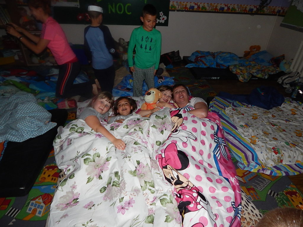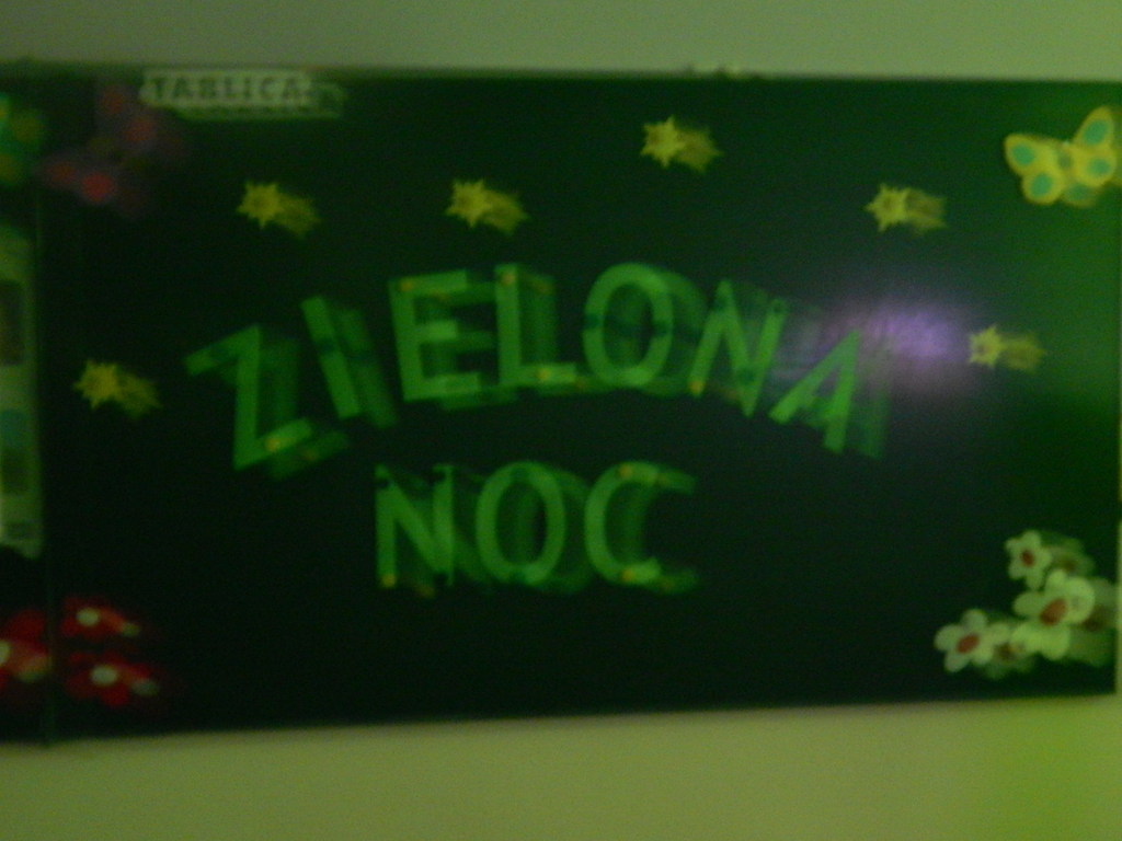 Chcąc uatrakcyjnić pobyt w przedszkolu dla dzieci sześcioletnich zorganizowano „Zieloną noc”. Taka forma spędzenia ze sobą czasu z pewnością pozostanie w pamięci absolwentów przedszkola. „Zielona noc” rozpoczęła się w piątek około godziny 18:00 i trwała do soboty do godziny 9:30, kiedy to rodzice odebrali swoje pociechy do domu. Tej nocy odbyły się liczne konkursy i zabawy sprawnościowe. Nie obyło się też bez dyskoteki w stylu „Piżama disco”. Bardzo zmęczone dzieci zasnęły około godziny 1:00. Kiedy dzieci spały „Zielona nocka” posmarowała maluchy pastą do zębów i poplątała ich ubranka. „Zielona nocka” wszystkim dzieciom bardzo się podobała i zostanie w pamięci na długie lata.