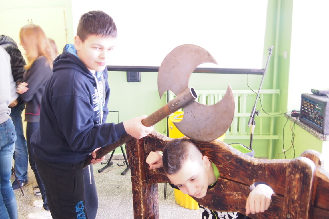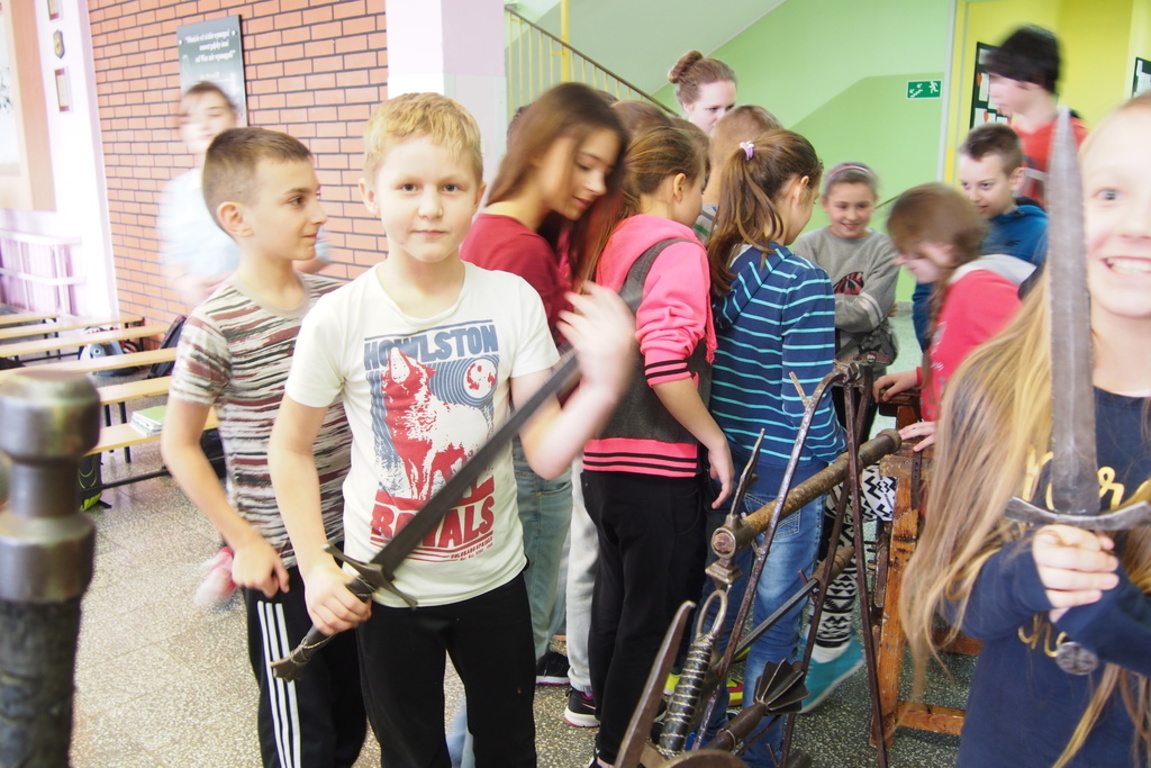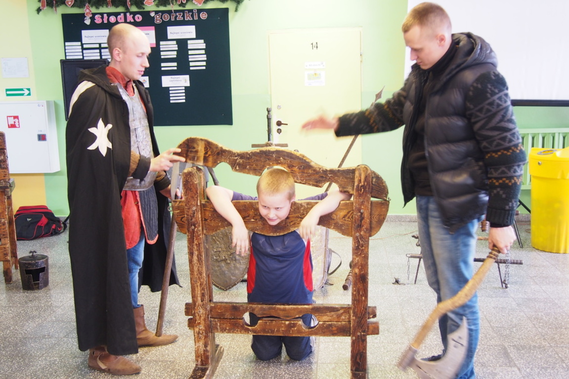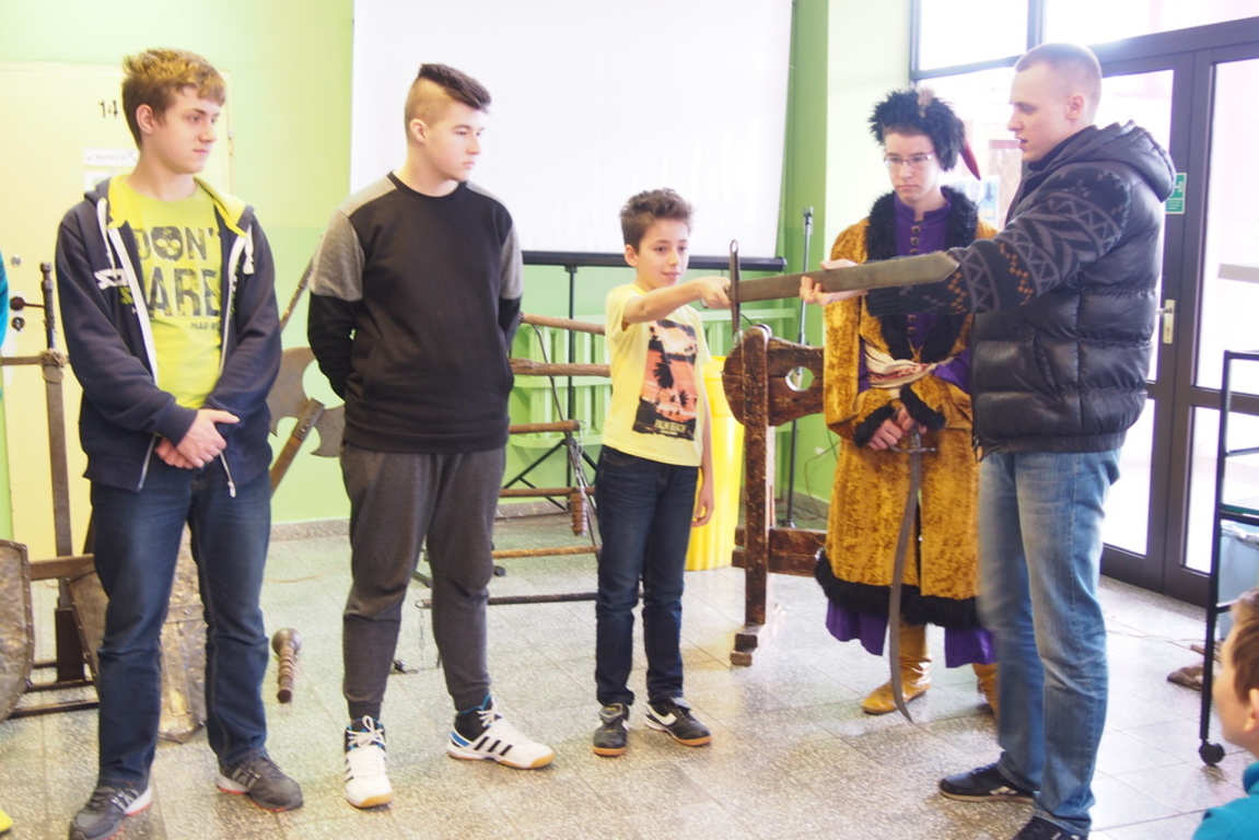 Dnia 11.02.2016 roku naszą szkołę odwiedzili goście niezwykli. A byli to najprawdziwsi rycerze, którzy przenieśli się w czasie i ze średniowiecza szczęśliwie trafili do nas. Uczniowie byli zachwyceni. Mieli okazję uczestniczyć w pasowaniu na rycerza, a także wziąć udział w prawdziwym pojedynku rycerzy. A stawka była wysoka- była to walka o serce wybranki. Niestety niektórzy mieli mniej szczęścia i za zdradę zostali zakuci w dyby lub spotkała ich inna kara za powszechne w średniowieczu przewinienia.