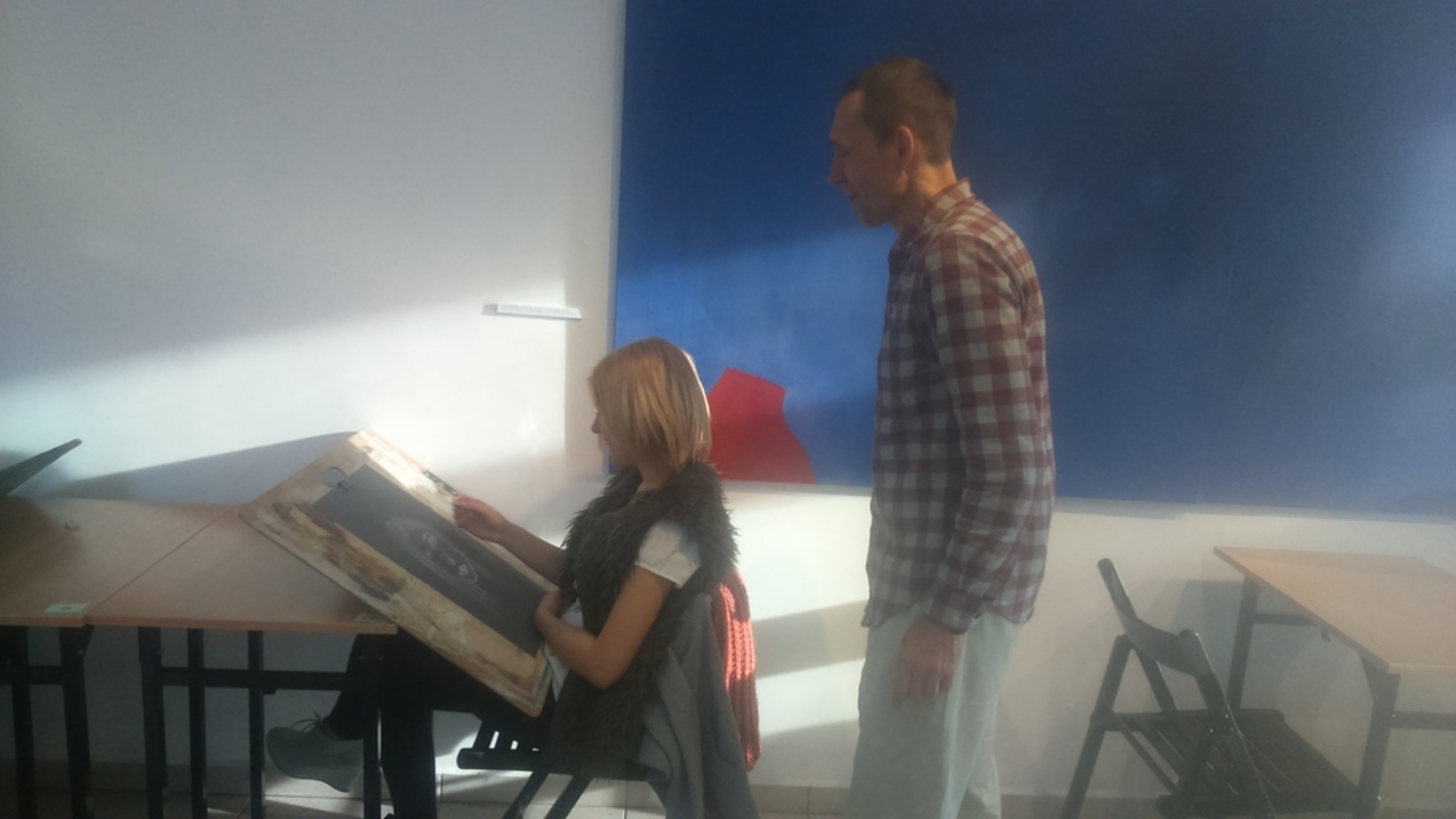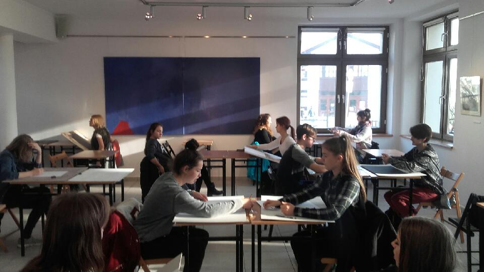 21 listopada 2016 roku, uzdolnieni plastycznie uczniowie naszego gimnazjum, mieli okazję przeżyć fascynujące lekcje plastyki pod okiem profesjonalistów w Zespole Szkół Plastycznych w Gdyni. Dzięki niespotykanej gościnności pracowników szkoły, mogliśmy obejrzeć niesamowite dzieła i w praktyce poobcować ze sztuką. Dr Adrian Kołtoniak zadbał, by podczas pobytu w placówce niczego nam nie brakowało, natomiast malarz, p. Tomasz Sójka podjął się wyzwania oprowadzenia naszej licznej grupy po wszystkich pracowniach i zakamarkach tej wspaniałej, artystycznej placówki. Mogliśmy obejrzeć obrazy, mozaiki, rzeźby, fotografie, wejść do pracowni fotograficznej i finalnie wziąć udział w warsztatach plastycznych pod okiem naszego przewodnika. Uczniowie, pracując w parach, tworzyli własne portrety w różnych technikach. Dowiedzieli się wiele o egzaminach do liceum oraz warsztatach artystycznych, w których część młodzieży juz postanowiła wziąć udział. Serdecznie dziękujemy Dyrekcji i pracownikom ZS Plastycznych w Gdyni za miłe przyjęcie, cenne wskazówki i niesamowitą przygodę. Mamy nadzieję, że w przyszłym roku spotkamy się ponownie. Oto zdjęcia ze spotkania.